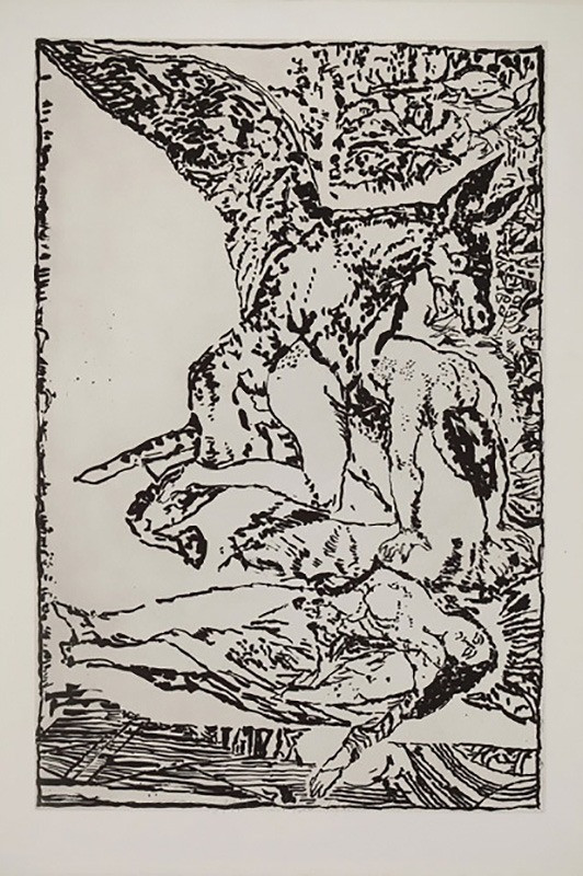 Tant et si bien qu’il ne fallut que trois mois pour faire de moi un «zombie», forme particulière sans aucune défense, affaibli et disponible au corps médical. Je fus admis à l’infirmerie par le médecin capitaine pour «allergie aux kaki» et mieux encore, intégré dans le système administratif et soignant de cette annexe du régiment. J’eus la responsabilité de toutes les vaccinations et assistais le médecin capitaine comme il se doit dans les consultations. J’assurais avec perfection le service, écoutais sa médecine, lisais les revues médicales, rédigeais les ordres de mission. Ce docteur Milhes est certainement l’homme que j’ai le plus aimé dans ma vie; il était beau, avait une jolie voix du sud-ouest, avait une totale confiance en moi dans les limites qu’il m’accordait de faire des diagnostics, mais pas de thérapie. J’usais légèrement de mes pouvoirs pour faire admettre mes copains à l’infirmerie, les exonérer des corvées et les promener en leur faisant des ordres de mission. J’imitais parfaitement sa signature. Je m’étais aménagé une «cabane bambou» dans les greniers et réalisais, avec des moteurs électriques, de grandes peintures sur les draps que nous avions en stock, avec de la peinture d’iode, du bleu de méthylène et du mercurochrome. C’est pendant une permission et dans cette période-là que j’ai rencontré Jean Fournier. D’abord, sachons que Jean Fournier avait acheté une maison dans le même village où habitaient mes parents. C’est le peintre en bâtiment, un peu italien, qui venait de peindre la grille de la dite propriété, qui me prit en «stop» sous sa propre responsabilité; en effet il n’avait son permis de conduire que depuis une journée. Chemin faisant (j’allais à Paris au Salon de Mai), il fut convenu qu’il me présenterait à Jean Fournier dont je ne connaissais pas la galerie et redoutais le pire. Ce qui fut fait. Jean Fournier m’examina gentiment. Il connaissait presque tout ce que je connaissais. Il fut la première personne à qui je parlais dans le sens biblique du terme, et dans la suite du temps, nous devînmes amis. Avant de partir de sa librairie-galerie, il m’offrit l’Éloge de la main de H. Focillon et me dit que j’étais fait pour être peintre. J’ai pris cela très au sérieux.