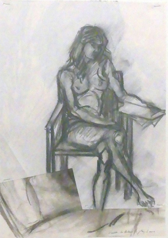 La lecture. Camille. Dessin au fusain et agrafage. 41x35,5cm. 2002