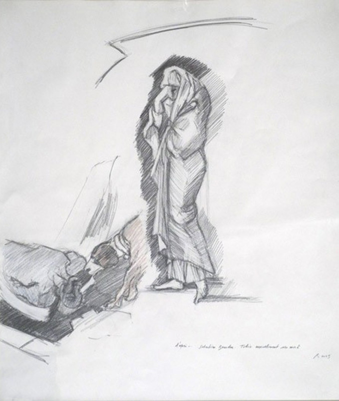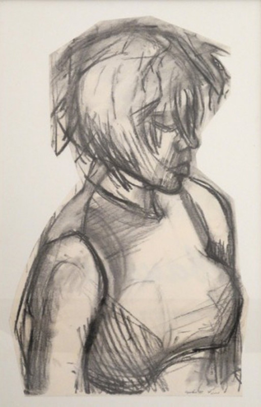 Cynthia. Fusain sur papier. 58 x 34 cm. 2002
