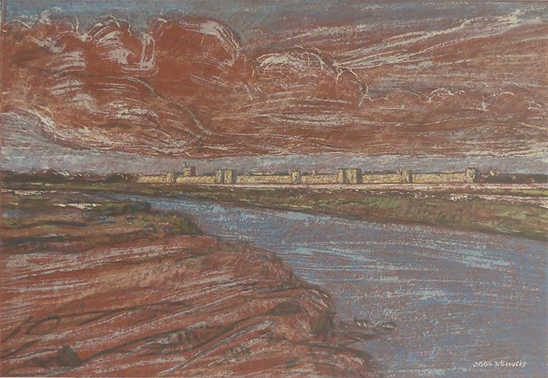 Les remparts d'Aigues-Mortes. Caseïne sur papier. 24 x 34,5 cm. 2004